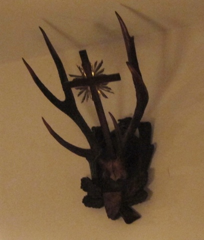 I sat down and noticed a few things. There were antlers again, this time with a cross.