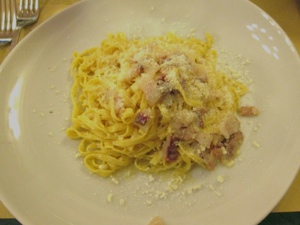Ok – back to lunch. We tried to go to a recommended sandwich shop in Mercato Centrale, but the line was crazy. Another restaurant also had a grotesque line, so we settled for a third restaurant near the market. I had tagliatelle with cacio (cheese) pepe (pepper) and pancetta (pancetta). It was tasty, but I would have liked more pepper.