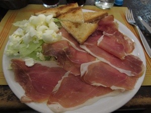 I was in the mood for a simpler dinner tonight, so found myself at the Ostera dell’ Orsa having tortellini in brodo and prosciutto with crostini and butter. Both were tasty and very comforting.