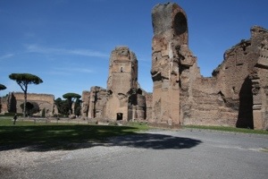 I leave Ancient Rome behind then, and head to more Ancient Rome. Approximately a mile away I visit the Terme di Caracalla. Ancient Roman baths, the grounds are cool and languid. The original building is largely gone, but some of the mosaic floors are still visible amidst the skeletal remains of the building. I stop briefly to relax before continuing on to the catacombs.
