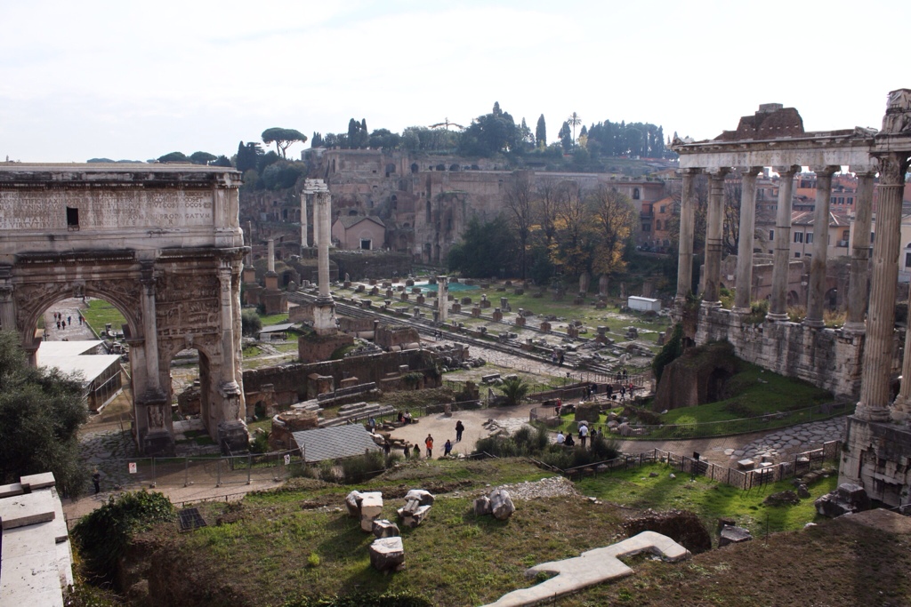 First full day in Rome, and we get up eat breakfast, and check out of the hotel. Here is the downside of traveling in December: Days are really short. With the sun setting between 4:30 and 5 pm, we don’t want to waste any daylight hours traveling. Instead our grand plan is to travel in the evening, in the precious hours between closure of the sites and dinner. This is why we are checking out now: Our trip will begin and end in Rome, but tonight we will be elsewhere.