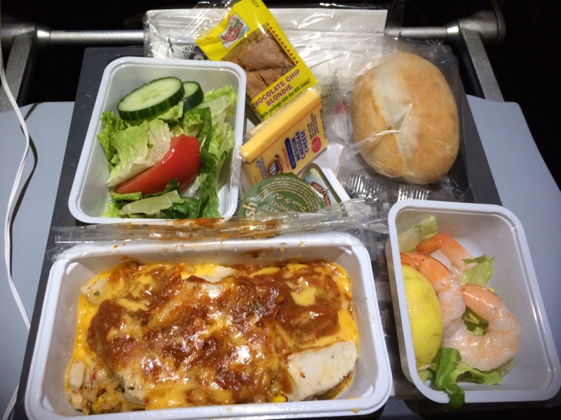 The time for taxiing was indescribably long. Seriously – it was over an hour, which left us taking off over two hours behind schedule. Once aloft, meal service went especially quickly. I think the flight crew had enough of us already.