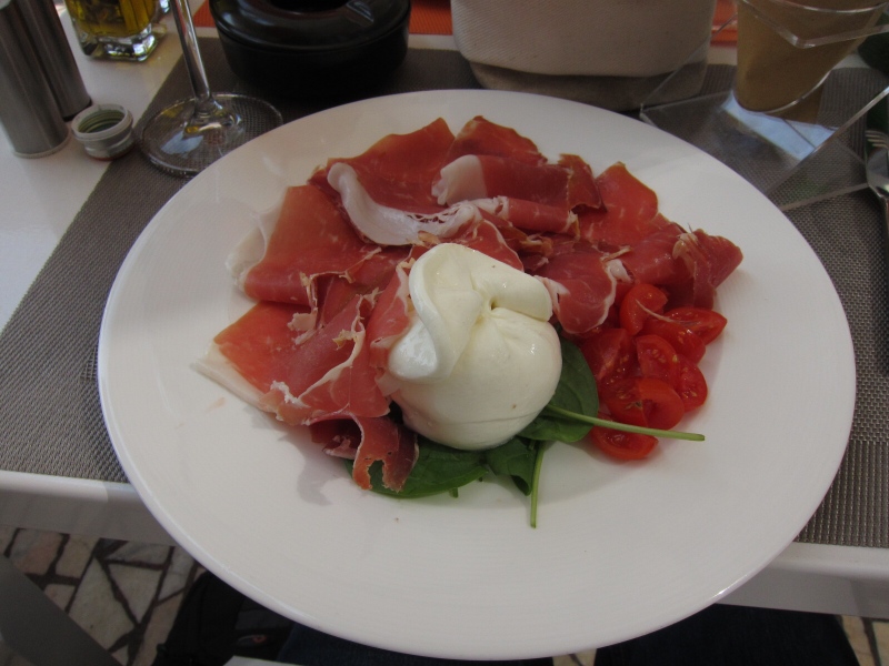 To eat G had a ham sandwich, and I had a caprese salad with burrata and 18 month prosciutto. This was absolutely delicious and much needed.