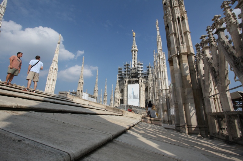 Upon arrival in Milan, we took a taxi to the hotel and checked in. We had arrived early and our room wasn’t yet ready, so we dropped off the bags and headed out the door. G asked, gazing longingly at the cushy seats in the lobby, “shouldn’t we sit down and figure out what we are doing?” To this I gregariously replied, “No necessary! We are going to the Duomo! We can figure out the rest after we get there!”