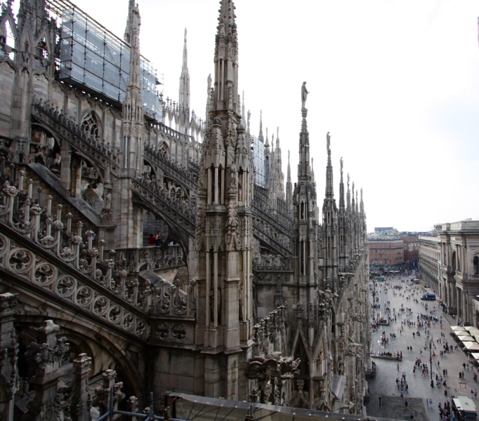 After our repast we finally went to the Duomo. This is a gothic church, harkening more to the art and architecture of France than it does to the Italian peninsula, so it is different from other places I have visited. It is spectacular, and even overwhelming in its scale. They ask us not to take photos inside, so I have none to show you, but take my word for it.