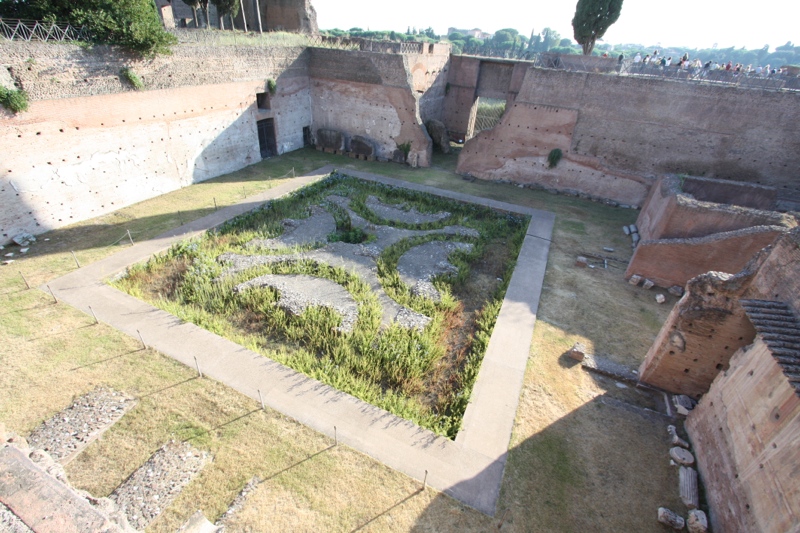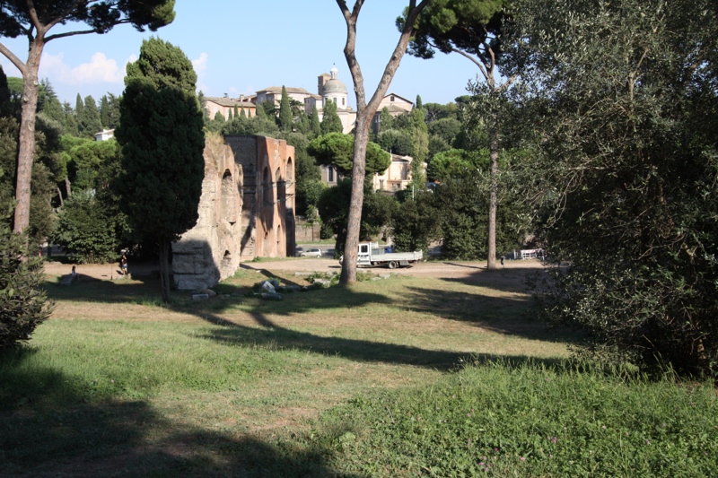 Next we stop briefly at the Arch of Constantine, and head to the Palatine Hill. I am hoping that, with some of the trees, there will be more shade to protect us until later in the afternoon when we can hit the Forum. For a time this was true, and we found our respite. Yet we moved up the hill toward the ancient palaces and again were left without protection. And winds were gusty here, adding to our discomfort periodic blastings with sand. It was ancient sand, but still it was sand.