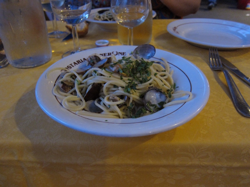 I had again the spaghetti alle vongole. I return to my hypothesis, that Americans just don’t know how to do clams with pasta, because this remains as divine as ever (I’ve tried this back home, even in New York, without success).