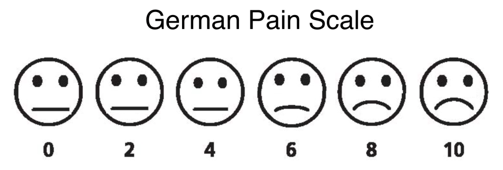 This is the visual pain scale that we use in the US.