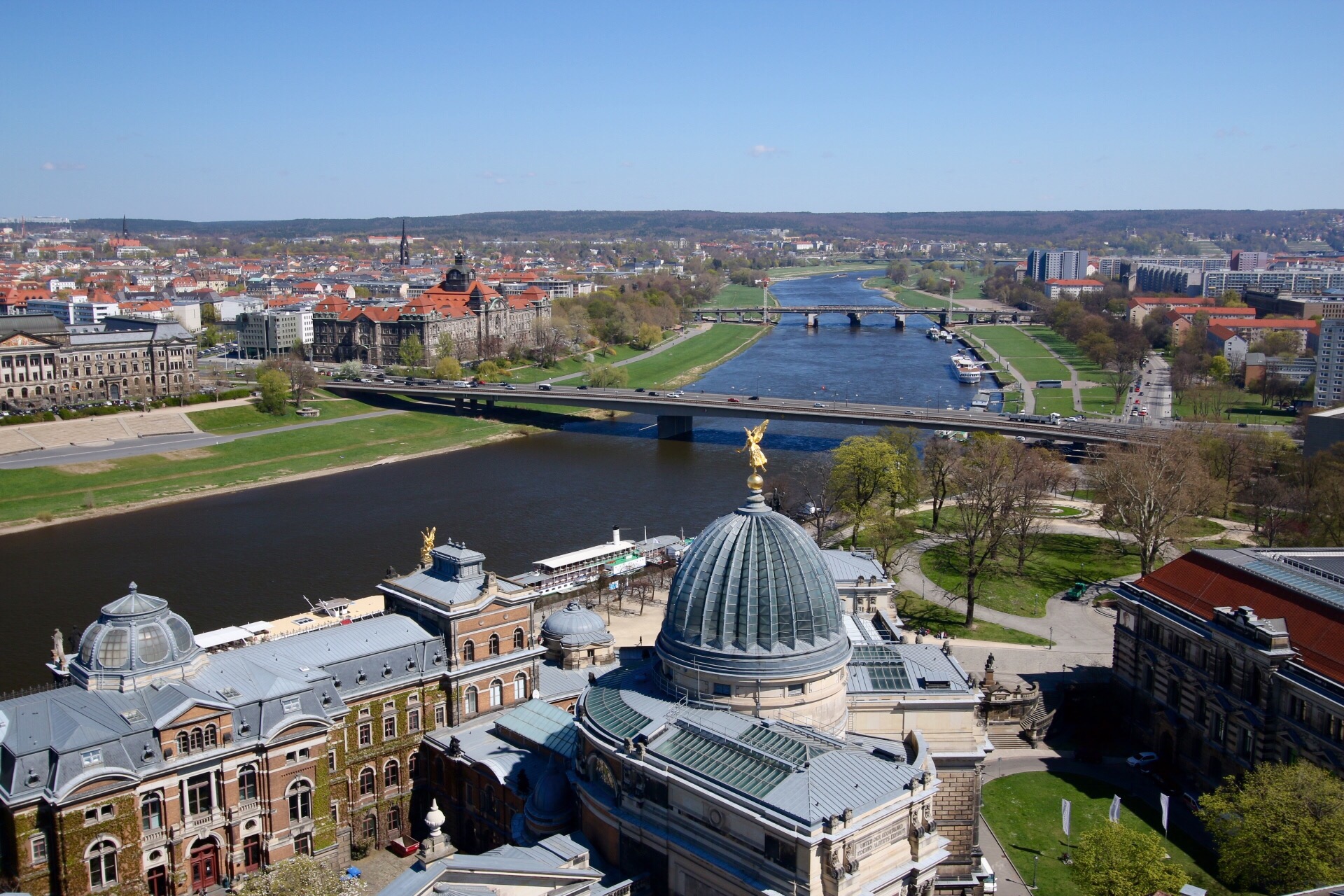 This is what I saw when I got there: spectacular views of the town, which stands at a bend in the river. The comparison to Florence is apt, in that there are no skyscrapers here, but Dresden is much smaller than her Italian counterpart, and having been largely destroyed in the war, she has a great deal of communist era architecture that doesn’t match her history.