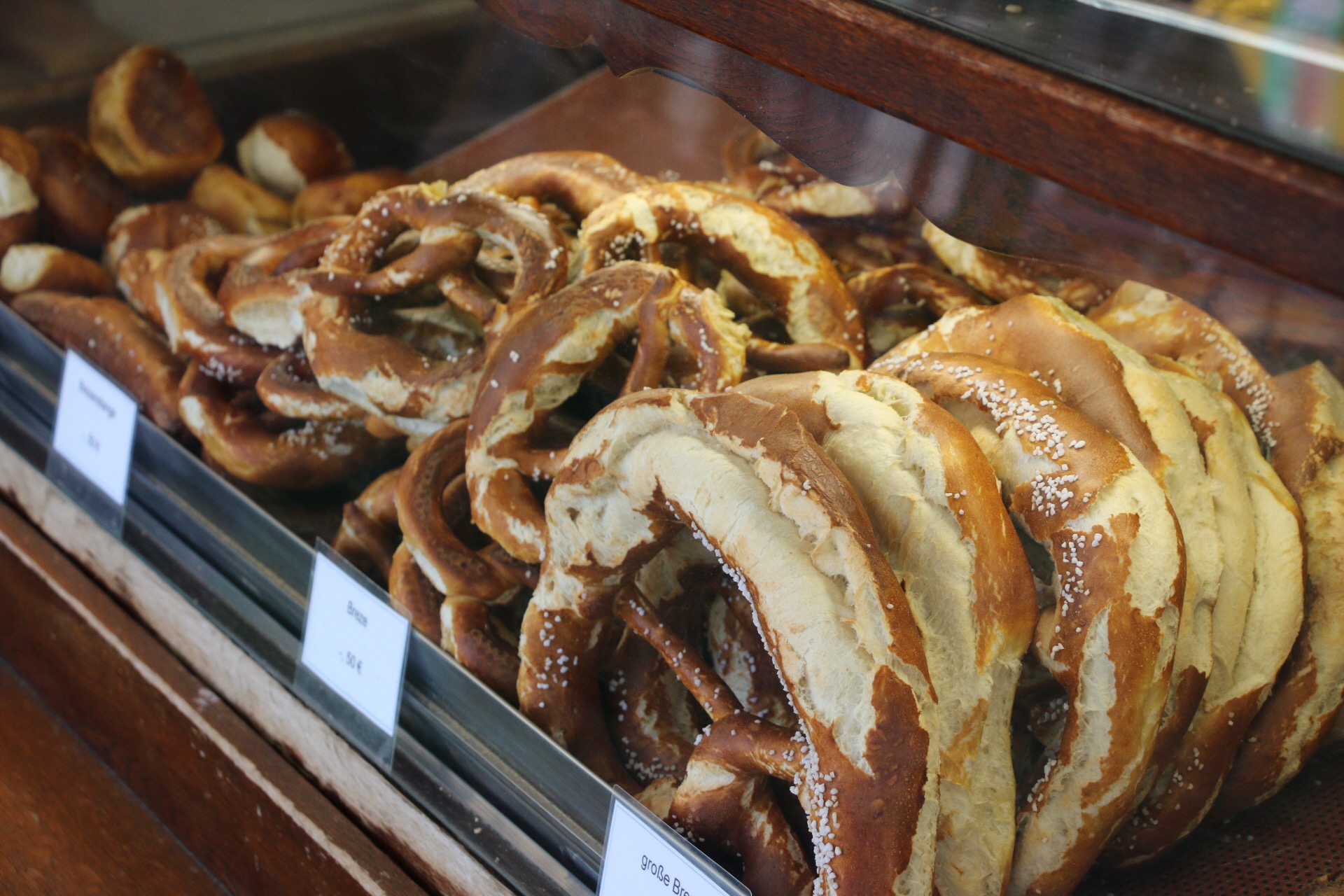 So this morning we headed out, passing again through the viktualienmarkt and Marienplatz. We paused periodically to gaze at pretzels in the windows as we passed by. Bavaria is known for her pretzels, and I’ve been eating gobs of them while I’ve been here.