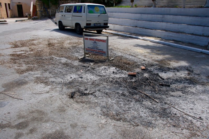 In the middle of the street, this pile of ash still smoldered. D was confused, but I had read that in some small towns on Crete they burn Judas in effigy on the night before Easter. We looked at the ash, and to the church just above, and I’m fairly certain that is what this was.