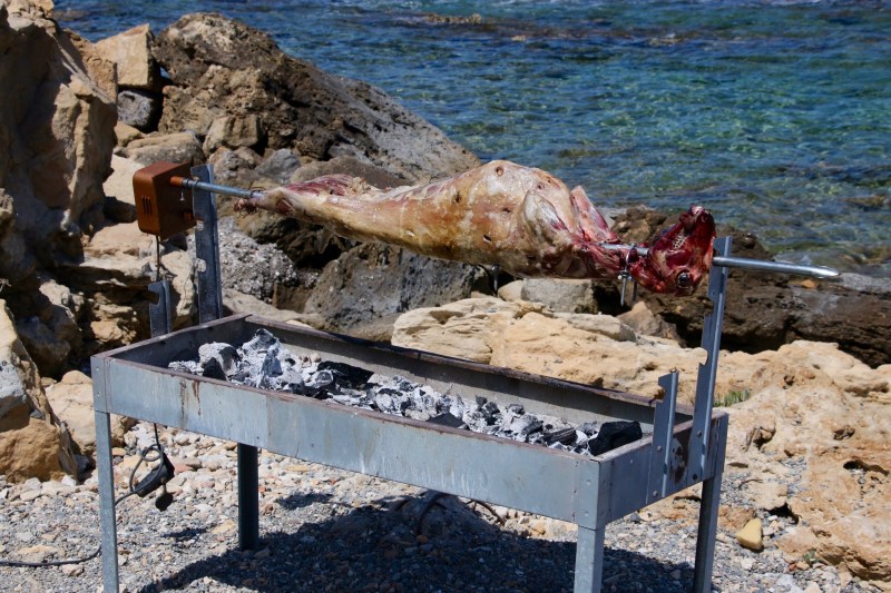 Near the beach, our hotel was setting up this lamb to roast, but I had read that in small towns in Greece, they often roast the lambs in the town square. We confirmed this with the hotel desk, but they had only general directions to proffer.