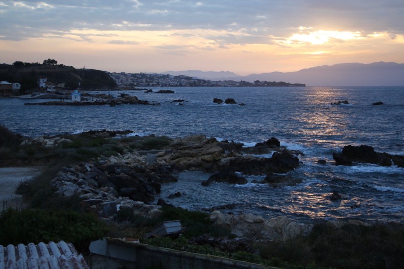 We walked briefly, taking in the sights and smells of small-town Crete, before heading at last to our hotel and an afternoon break. After a nap, we found the sun setting behind the clouds and ultimately dinner downstairs.