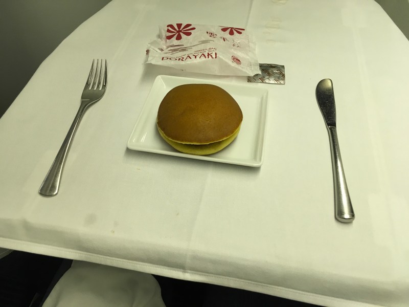 After a dessert of dorayaki, which is basically red beans sandwiched between two sweet pancakes, I finished the meal with my traditional in-flight cognac (or armagnac on Air France). Then I took a melatonin and slept for 6 hours or so.