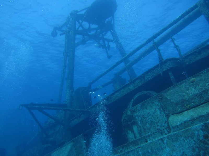 We got special permit tags to place on our BC’s, and jumped in. Swimming just east of where we were moored, the ship came into view.
