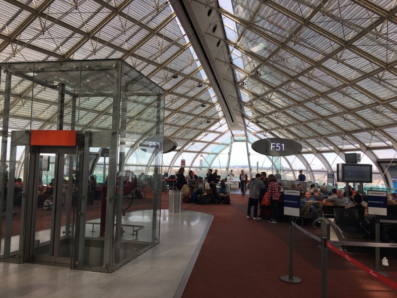 After dinner I slept fitfully, waking for yogurt as we landed in Paris. Transfers at Charles de Gaulle have been too often painfully slow, but today was better than usual. With a minimal degree of wandering and waiting, I found myself through passport control and into the lounge, where I spent three hours looking out at the tarmac and plying myself with espresso and other caffeinated beverages before boarding my flight to Bologna.