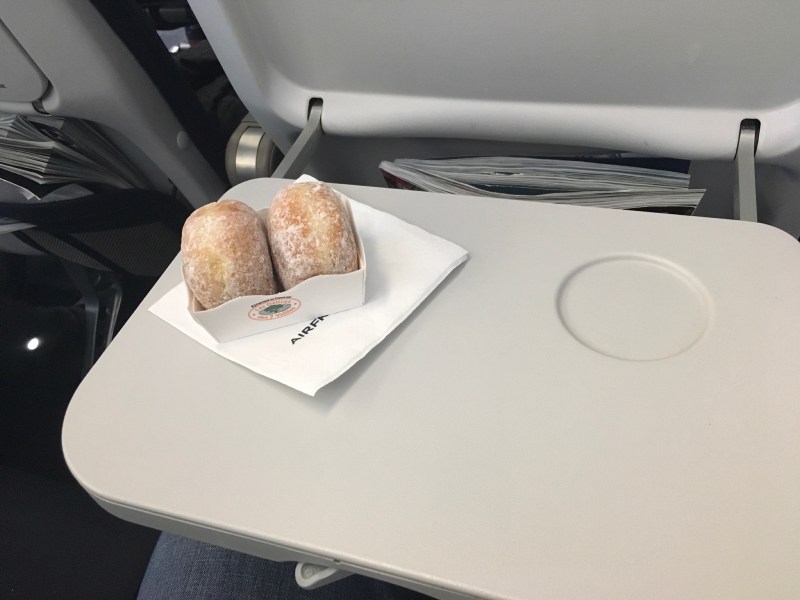 On this flight they gave us a snack of these jelly donuts. They were delicious. Or I was hungry – but they were at least OK.
