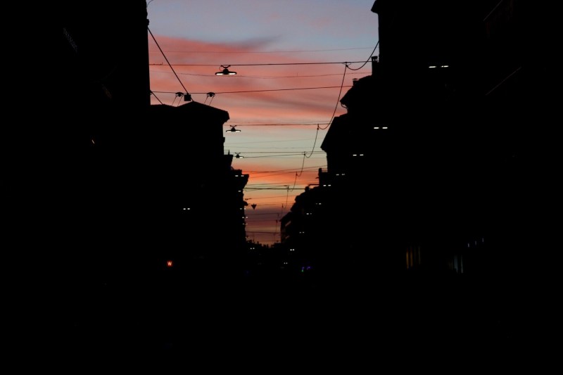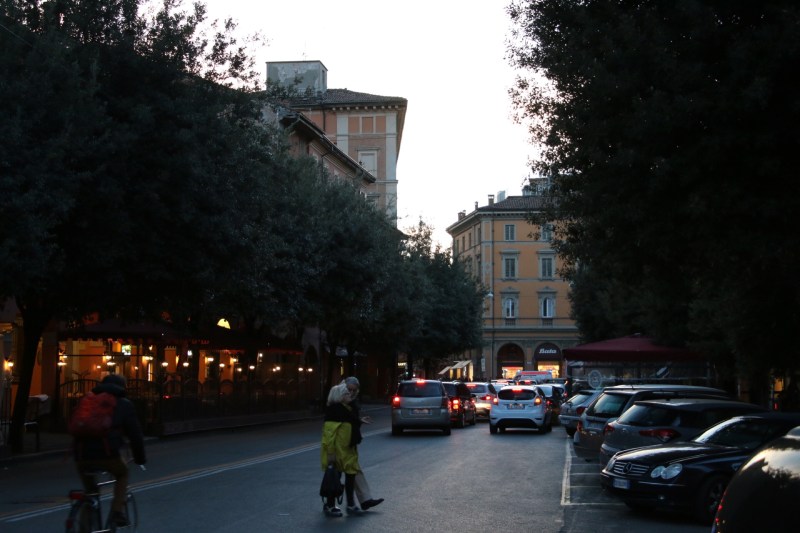 And as I finally headed west down Via Rizzoli, which changes names and becomes Via Ugo Bossi, I was giddy. Some places do that to me. The energy fires at the right voltage and wattage, and my soul responds. In the distance the pink clouds streaked across the night sky, and I found a meal.