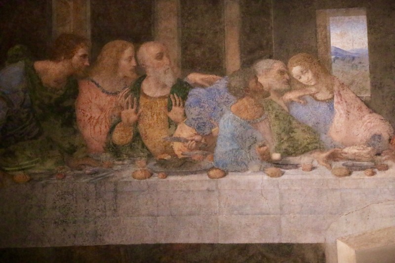 The first is DaVinci’s Last Supper. To get tickets, you have to go online well in advance. You pick them up 20 minutes before the allotted time, and queue up 10 minutes beforehand in a small hallway lined with pictures that describe its poor state of repair.