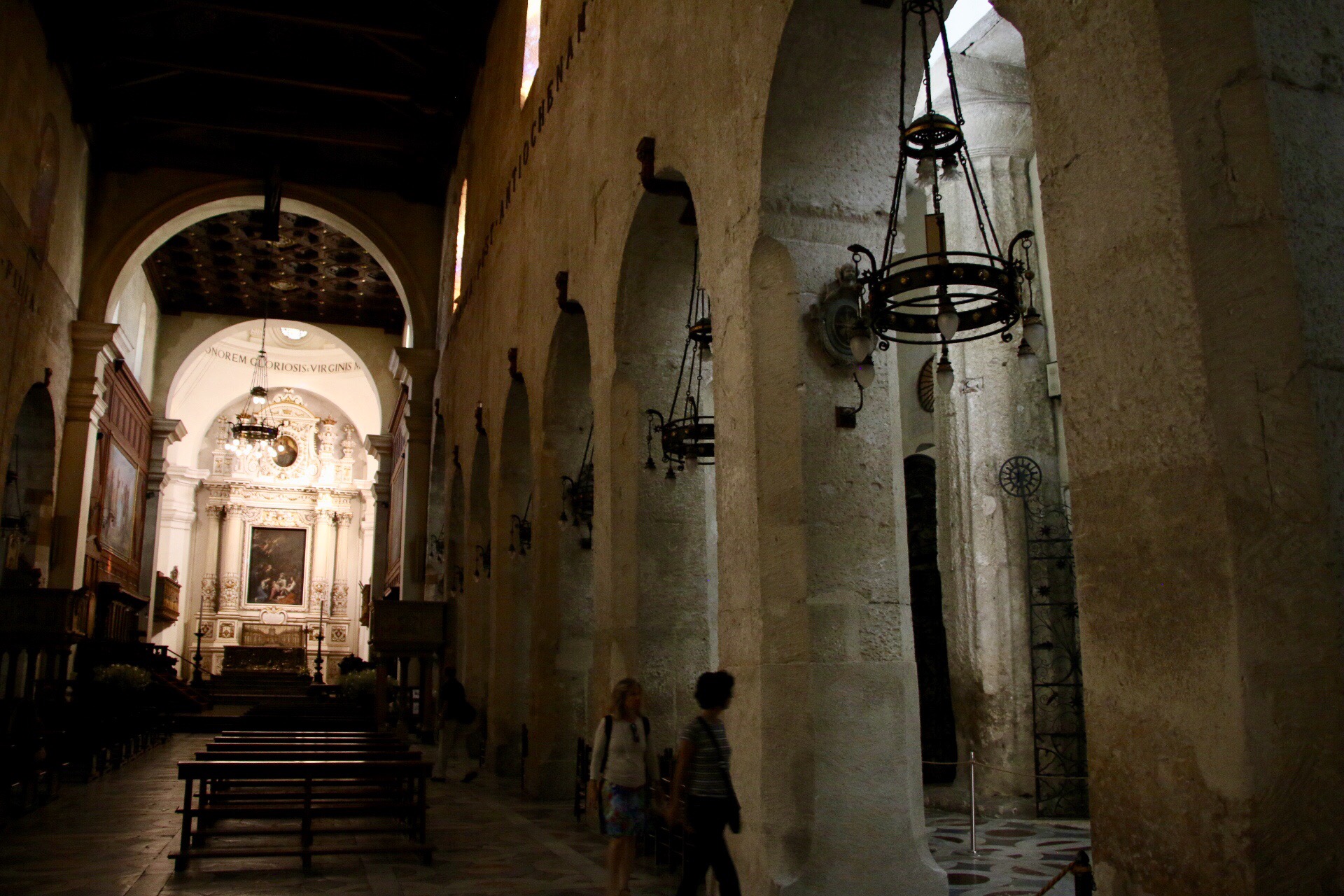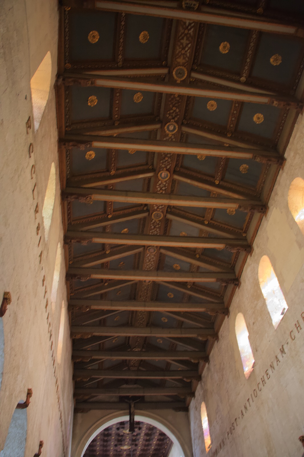 And you go inside. Within it seems at first another church, but if you look deeper, there is something more. The ceiling is triangular, rather than arched, and there is no transept, and the dome stands over the apse – a somewhat unusual location.
