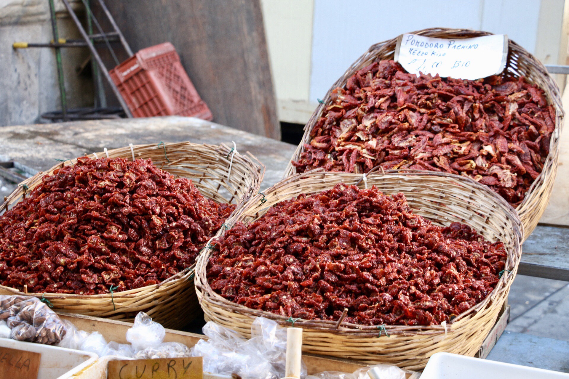 This is a good day to wander a street market on the island of Ortigia in the town of Siracusa, on the southeastern coast of Sicily.