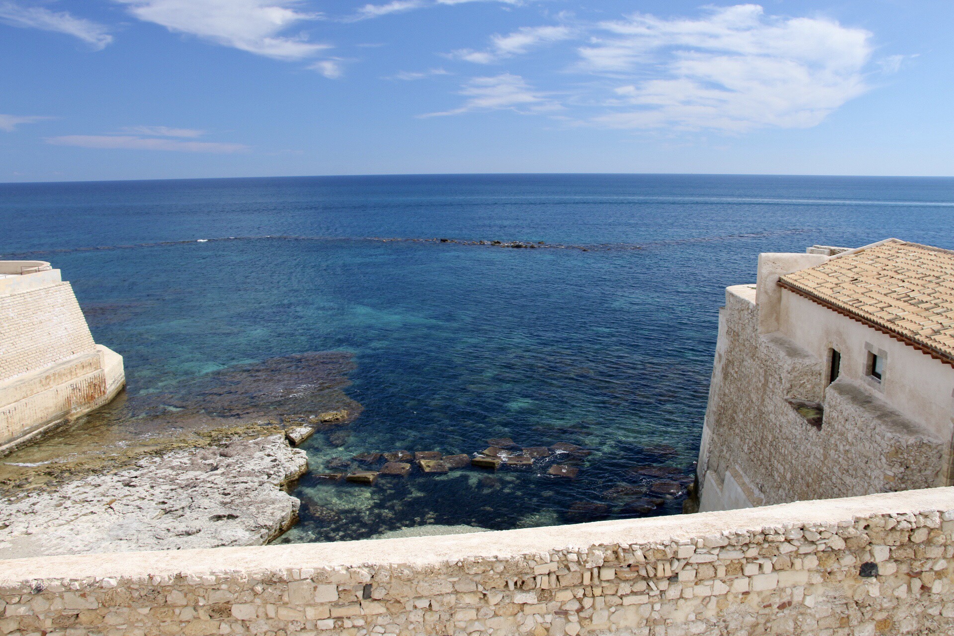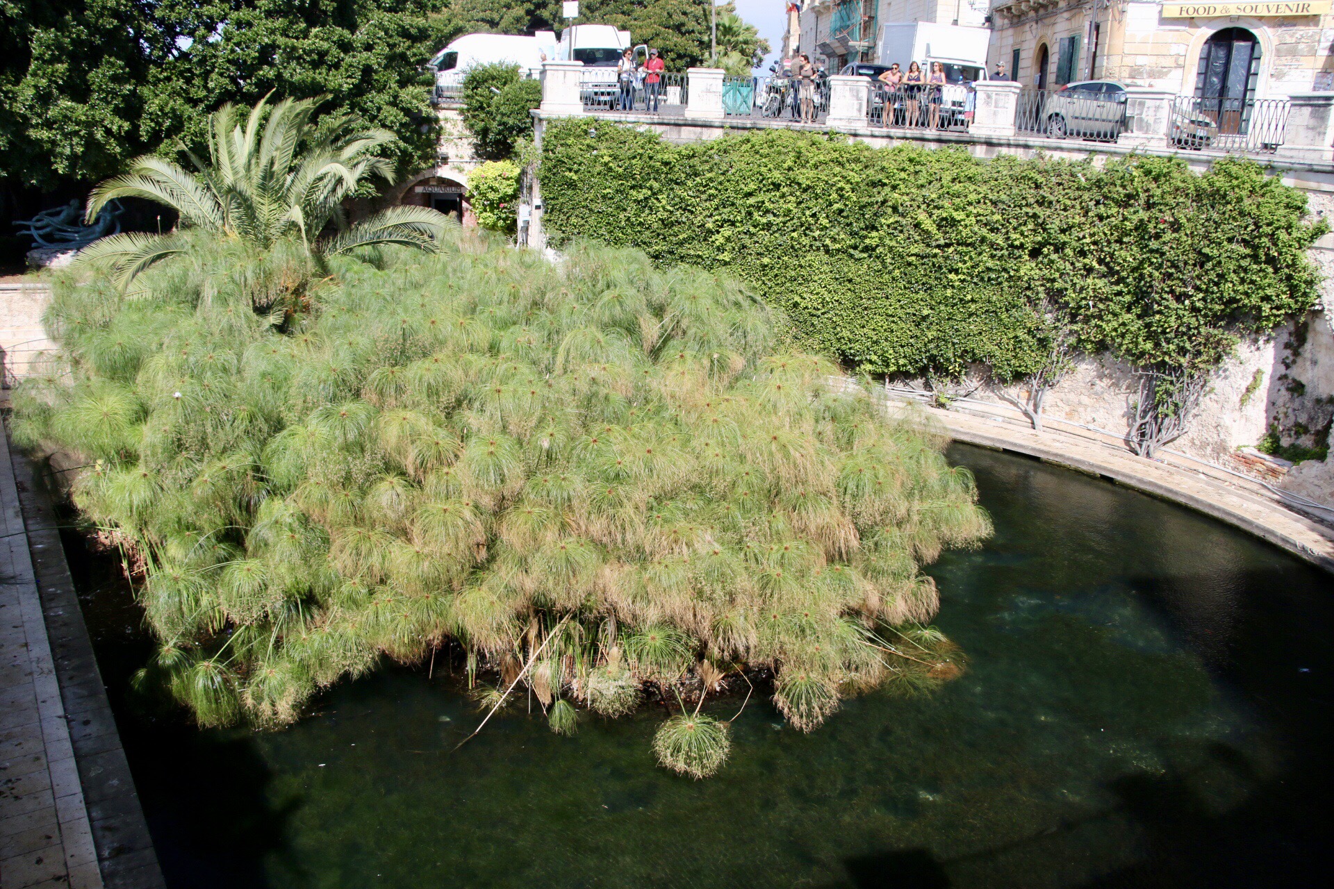 Sometimes, on a day like today, Greek myth comes to life, and unexpectedly you look up only to realize that you have been standing on at the edge of the fountain of Aretusa. This font has been supplying fresh water to the island since the first settlers arrived. As the story goes, Aretusa, a handmaid of the goddess Artemis, was transformed into a spring in order to protect her from the unwanted advances of the river god Alpheus. Making her escape, this is where she surfaced.