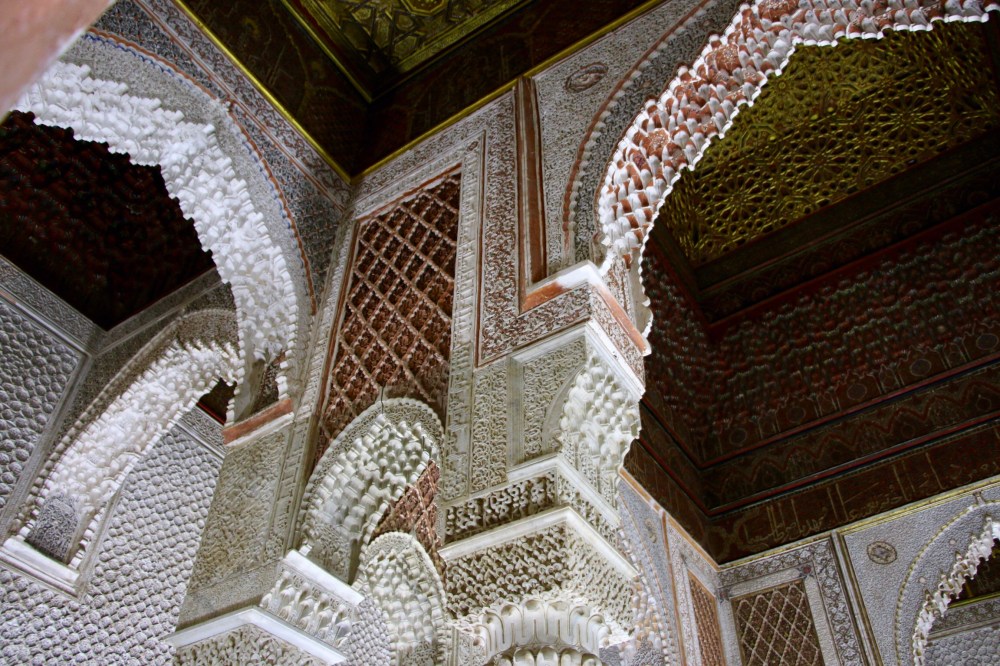 After this, I head further east, through the parched streets, and past the donkey carts, to the magnificent Saadian tombs. They were created with intricately carved Italian marble, and lost for generations. Forgotten, they stood guard of their wards within the bustling city, until photos from the air revealed their presence in the 1930’s.