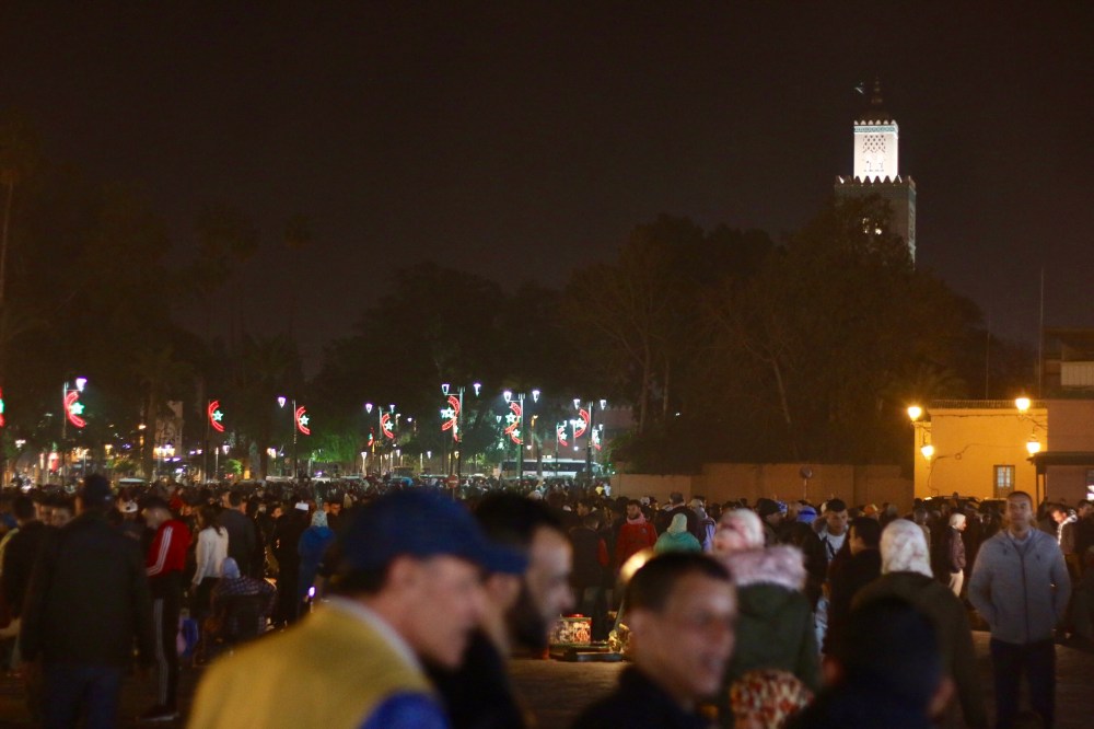 Plenty of the stands were busy with European-appearing couples, but I continued on. Eventually I found what I sought, however: a stand at which the seats were full, mostly occupied by couples that at least appeared to be local. This is Djema al Fna at night, where the square, occupied mostly by snake charmers and monkey handlers by day, goes through a transformation. Musicians play, dancers dance, henna artists draw, and food vendors vend while people eat.