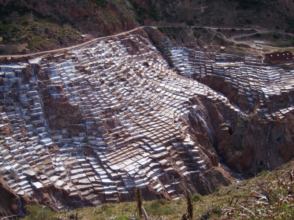 After lunch, we made one last afternoon stop at the local salt flats. 30-40 million years ago this area was under the sea, and when the mountains rose, massive salt deposits were left behind. A spring of highly concentrated salt water emerges from the mountains here, and the locals use it to make salt during the dry season.