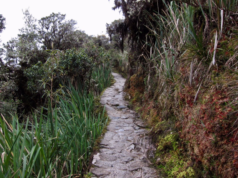 For the afternoon our course was mostly flat, albeit still comprised of irregular stones that were at intervals slippery and unbalancing. In some places the path was carved right out of the bedrock of the mountain, and it is not fully understood how the Incas did this. These areas, incidentally, felt no more stable for us than the stone pathways, as their builders still found ways to minimize their navigability.