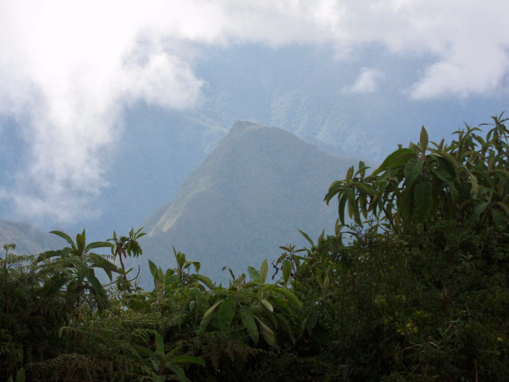 We were surrounded by clouds upon arrival. And then for just a minute the clouds parted and we saw the back side of Machu Picchu mountain. Our ultimate destination lays that way.