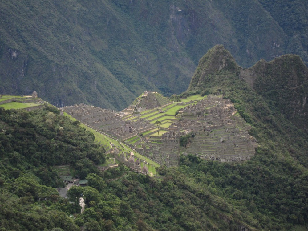 Through it all the rain came and went, and in due course we came into sight of the ruins of Wiñay Wayna, a grand terraced structure sitting in the distance, but soon the view was again lost in the mist.