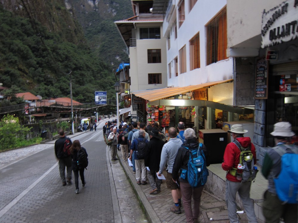 We spent last night in a very nice hotel in Machu Picchu Town, previously known as Aguas Calientes, which sits well below the historic site. We all were thrilled to take a hot shower, to start scraping off the accumulated grime from the hike, and to sleep in a real bed. We also had a nice meal (and I finally ate cuy), although frankly the food on the trail has been pretty decent.