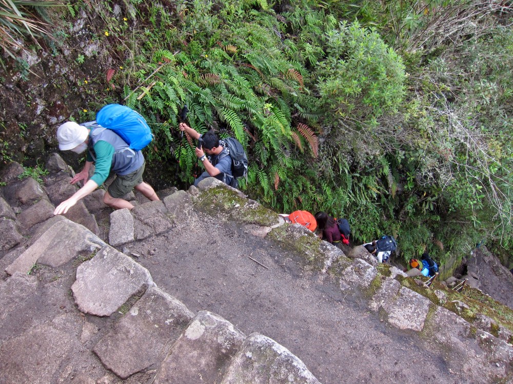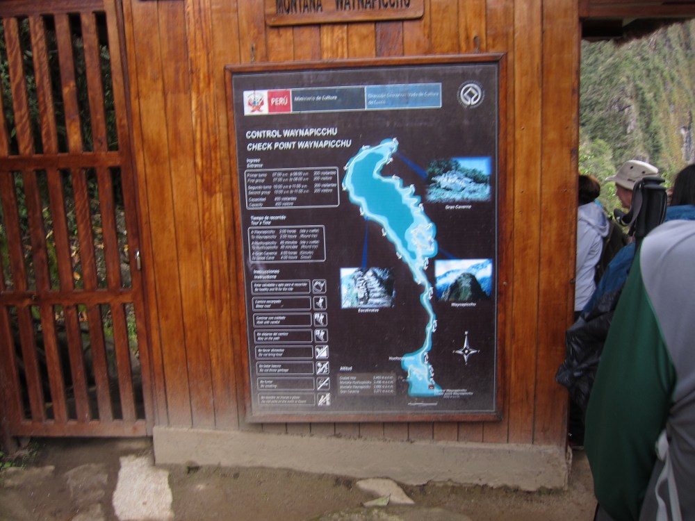 Before entering the trails of Wayna Picchu we had to sign in at a booth at the base of the mountain. We logged the time we entered and later would log the time leaving. Presumably this helps them track the people who fall to their deaths.