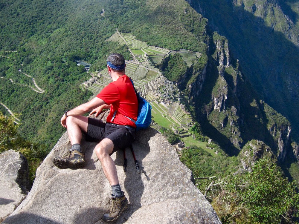 Including this seat, which gives an unobstructed view Machu Picchu, below. That’s me, BTW. I’m breaking a personal rule by showing a photograph of myself in the blog, but this photo is worth it.