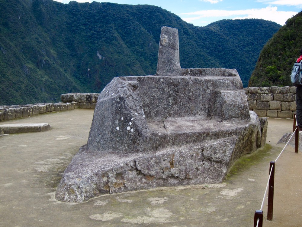 And finally, highest in the city is the sundial, sometimes called “the hitching post of the sun,” whose sides (or perhaps the apices – I’m not certain) point toward the four cardinal directions. It was used for astronomical observations, and there used to be many similar sundials scattered throughout the empire. The invading Spaniards, however, destroyed most of them, this one surviving only because it was lost.