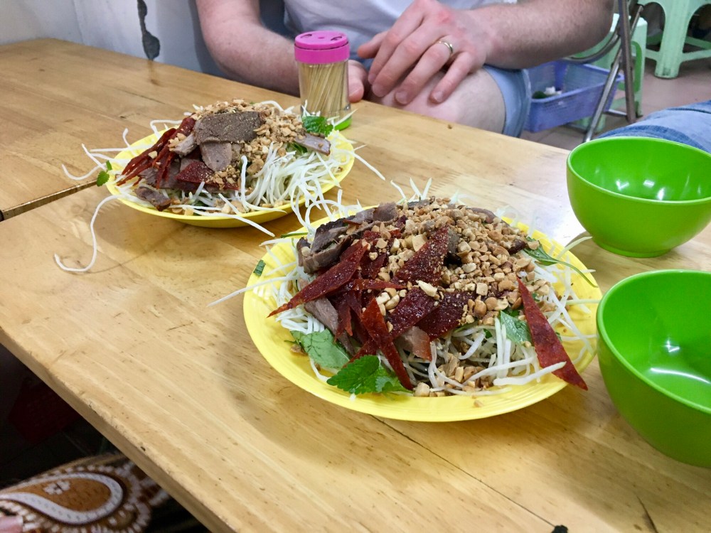 Such as this dried beef and green papaya salad (nom bo kho). This reminds me of the green papaya salad at the pahoa farmers market.