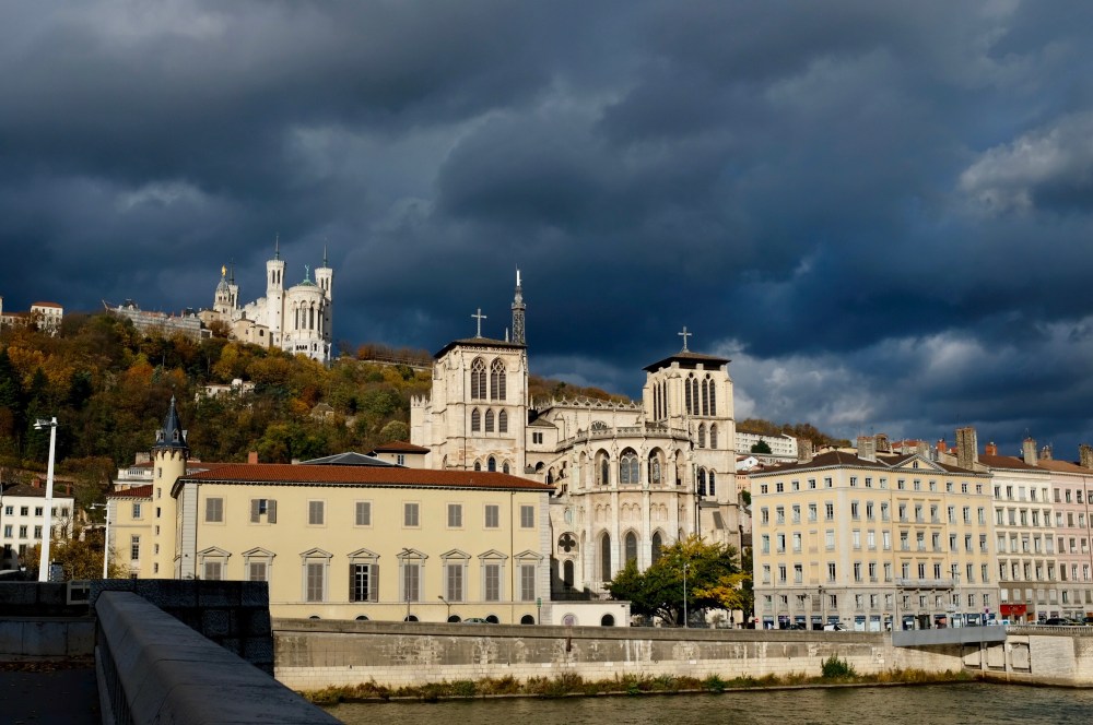 I looked up at the preternaturally luminous churches of St. Jean and Notre Dame, standing in stark contrast to those clouds, and wondered if we were about to get drenched. I was hoping we wouldn’t, because leading up to this trip the weather forecasts had been for clear days, but the threat of rain certainly gave me cause for hesitation.
