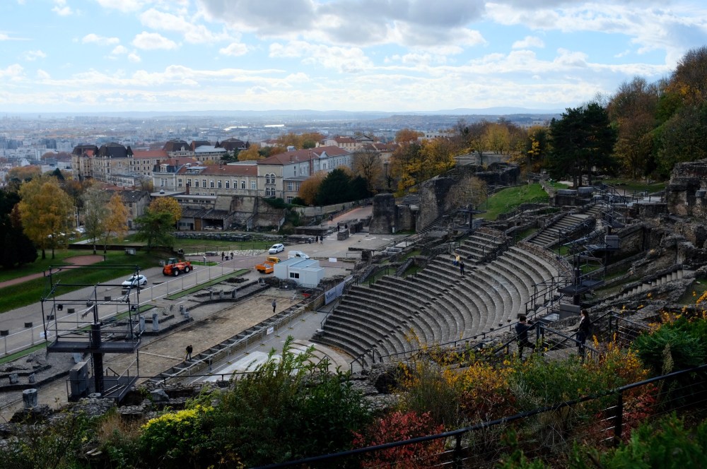 Leaving the cathedral, we headed south, to the remnants of the Roman era. Two thousand years ago this city was known as Lugdunum and was capital of Gaul. Today the remains of that time include the Roman theater, or at least a portion of it, which was built in 15 BCE.