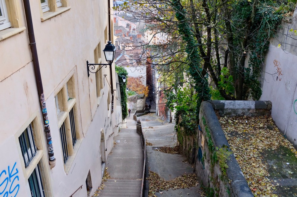 The clouds hung low and baleful in the firmament as we crossed the river Saône to the Vieux Lyon, the old neighborhood that lies just to the west of the river.
