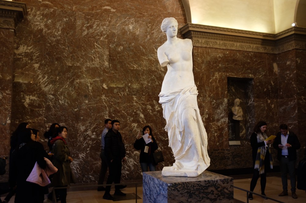 In the Ancient Greek galleries we find Venus di Milo. Her face is elegantly depicted, even if the proportions of the waist are a bit distorted.