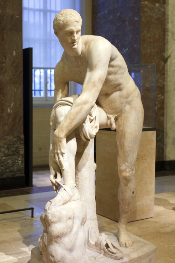 And further back still this ancient sculpture of Hermes Tying His Sandal draws my attention. As with many of the sculptures of this era, it is a Roman copy of a long-lost Greek original, in this case dating to the 4th century BCE. It is wonderful.