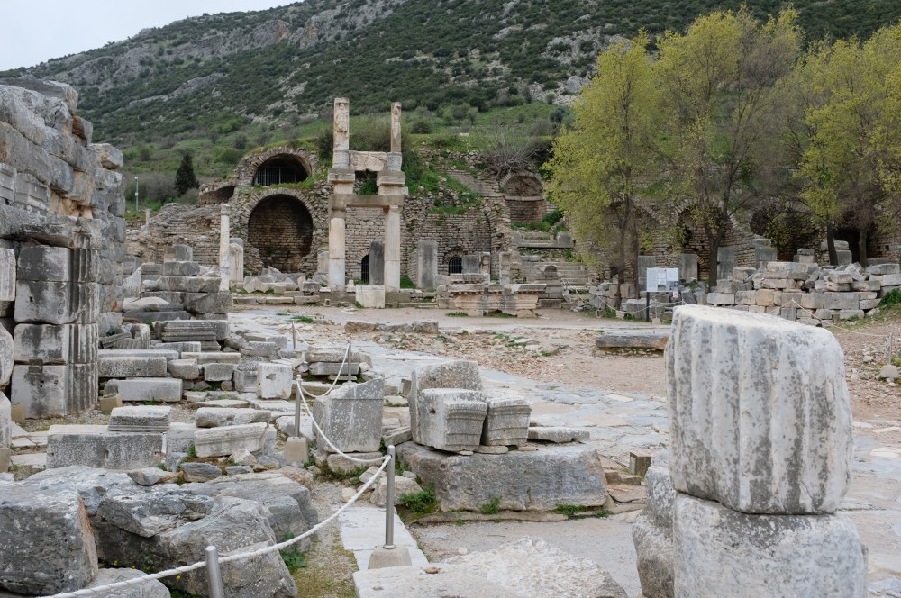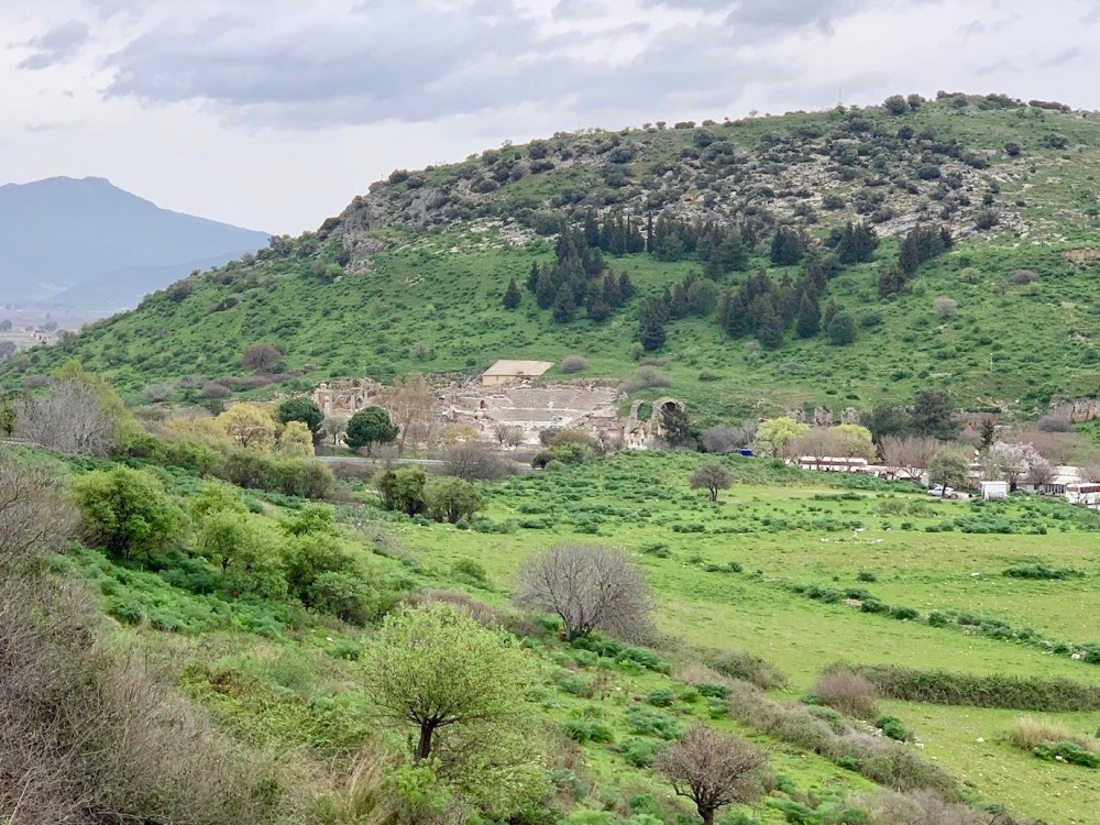 The first stop is at the foot of a massive golden statue of Mary. We aren’t here for the statue, however. Instead we are here, in sight of the odeon theater, to learn the story of the city of Ephesus, which has migrated across the region over millennia. We are about to visit the third manifestation of the city. It has moved twice since, we are told, and people debate whether the “fifth Ephesus” is the nearby city of Selcuk, or the slightly further away port city of Kusadasi.