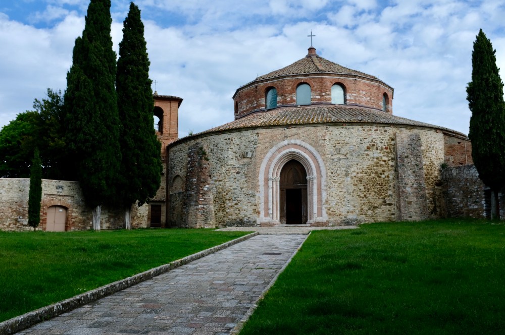 There aren’t a lot of round churches, although there are some in central Italy. At least some sources suggest this may have been the site of an earlier Roman temple, given the circular arrangement of columns within.