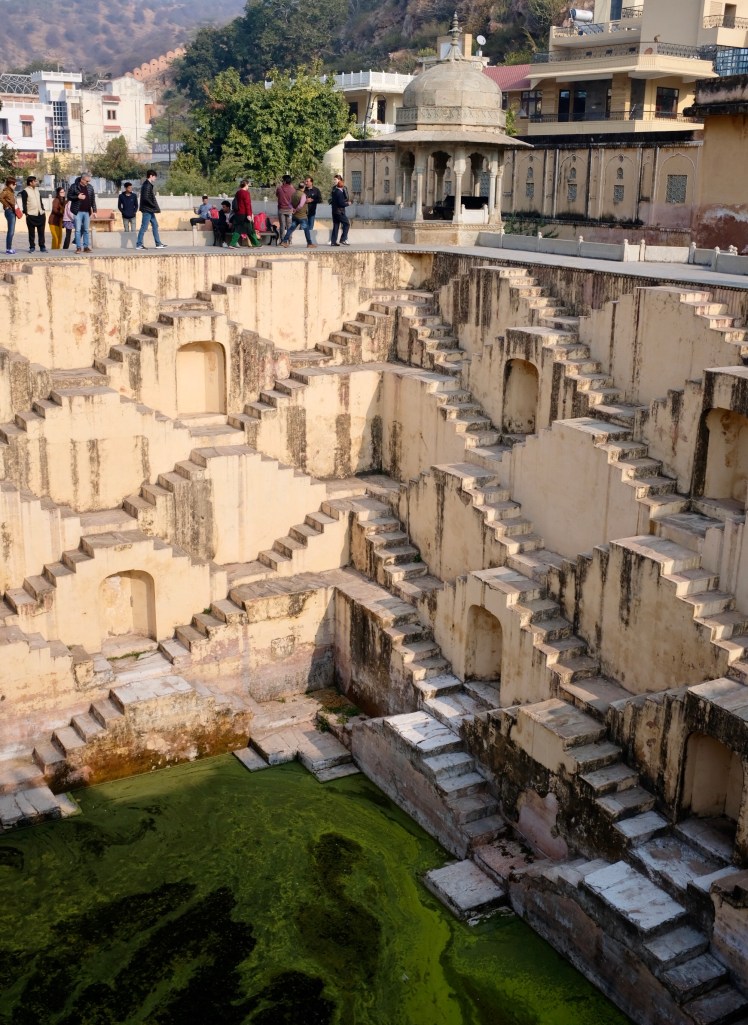 We drove out of town headed north (although I couldn’t have told this at the time) and up the hills toward the Amber Fort, stopping only briefly at this stepwell. Panna Meena ka Kund is 450 years old and is mesmerizing, like an Escher print come to life.