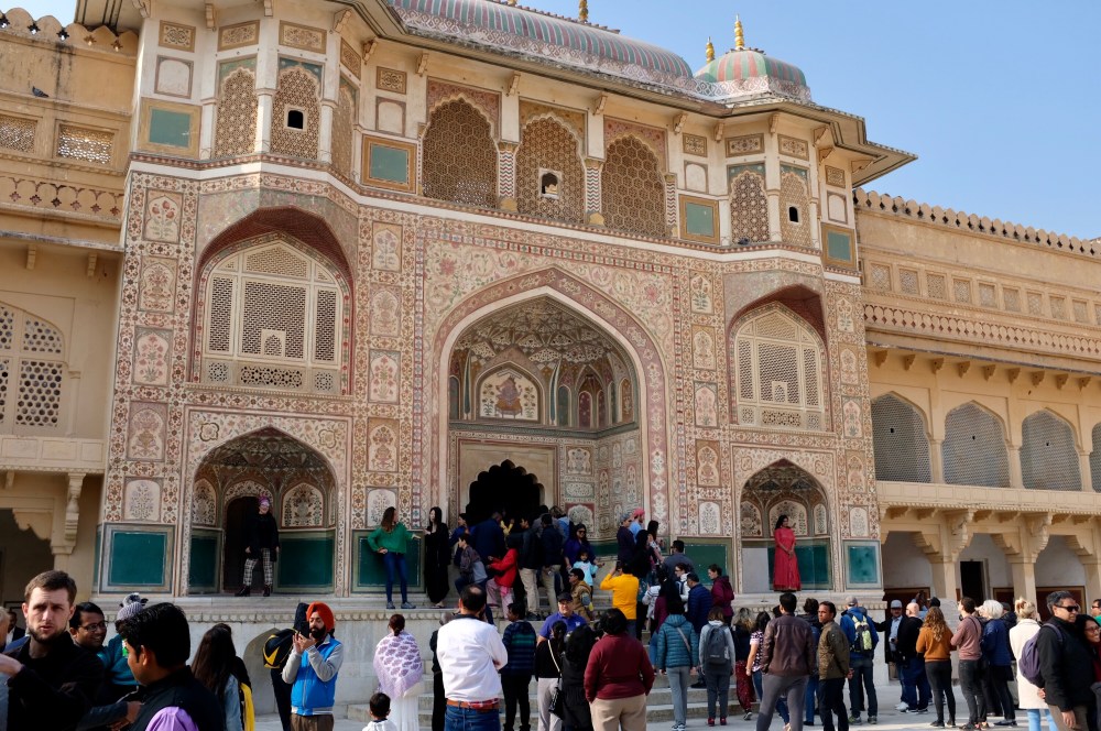 I continued further up into the fort, this time without an unsolicited private guide and ultimately without an audioguide, using just the information available from the few scattered signs and in the book I had downloaded. I climbed another set of stairs, passing through the Ganesh Gate into the private palace of the Maharajas. The Hindu god Lord Ganesh is said to remove all obstacles in life. I was told in the city that passing through one of the gates would remove my obstacles, and I considered those obstacles as I passed under his image.