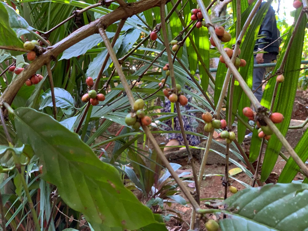 I’ve seen coffee before so that wasn’t really new. She pulled a fresh pod off of the plant. I don’t know if I was supposed to, but I ate it. In the end tasted a lot of the things that she plucked to show us. I was curious.