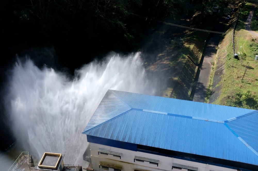 Including the Madupetty Dam, where the reservoir was overloaded, and the gates were held open in gaudy fountains of spray and mist to release some of the excess accumulated water.