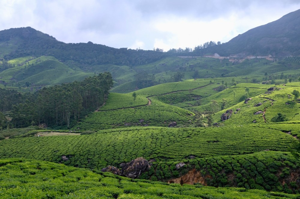 I woke before the sun had passed the horizon and looked out the window from our hotel in Munnar, high in the Western Ghats. The dark green shadows of a stirring countryside lay before me, nestled under a downy haze and the pale pink precipice of a precocious morning sky.