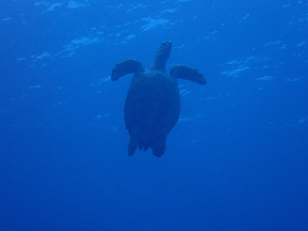 It rained again this morning, but I didn’t care because my two dives went smoothly and went off without glitches, even featuring a couple of highlights, including this turtle.